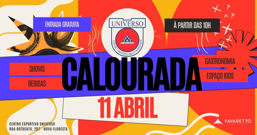 🎉 A CALOURADA UNIVERSO BH ESTÁ CHEGANDO! 🎉 É hora de reunir todo mundo para o melhor dia do semestre! 🔥Seja você calouro, veterano, parte da comunidade acadêmica, amigo ou familiar — todo mundo é bem-vindo para curtir essa experiência incrível! 💃🕺 📅 Data: 11/04/2025⏰ Horário: 10h às 20h📍 Local: Centro Esportivo Universo BH Prepare-se…
